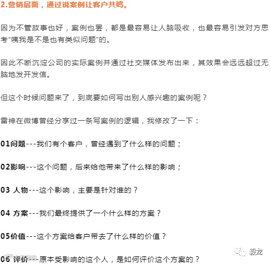 2.营销层面,通过说案例让客户感到痛。