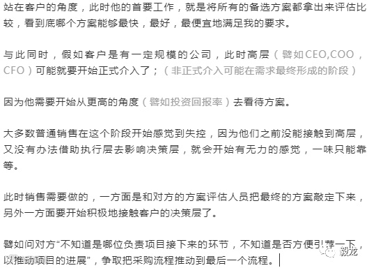 最后,假如说一问一答的是客服型销售的话,那能够实现围绕客户的采购流程开展工作的,是什么类型的销售呢?