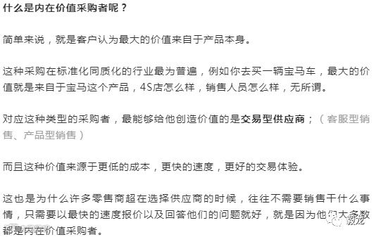 因此,根据如下三种采购类型,决定了到底什么样的供应商对于客户来说是最有价值的。