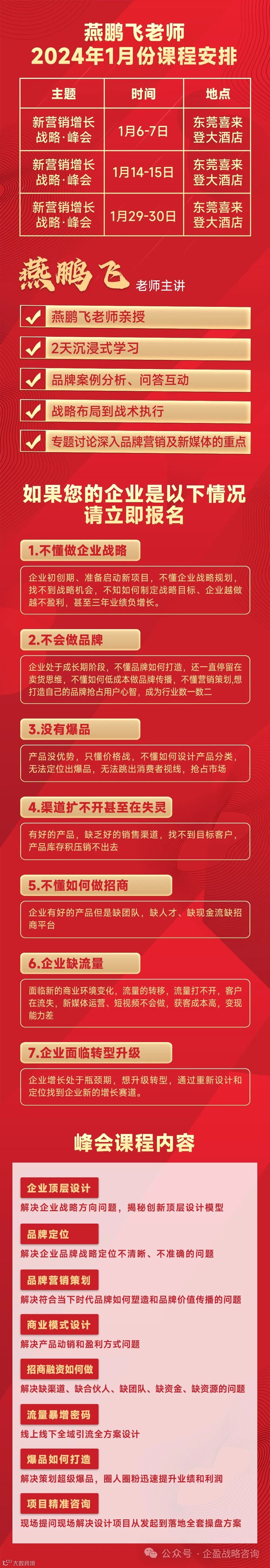 燕鹏飞老师2024年1月份课程安排