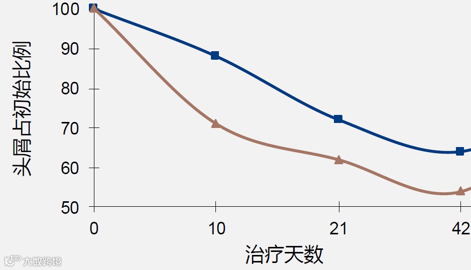 使用结果显示 0-42内使用含0.5%氯咪巴唑显著降低头屑数量。