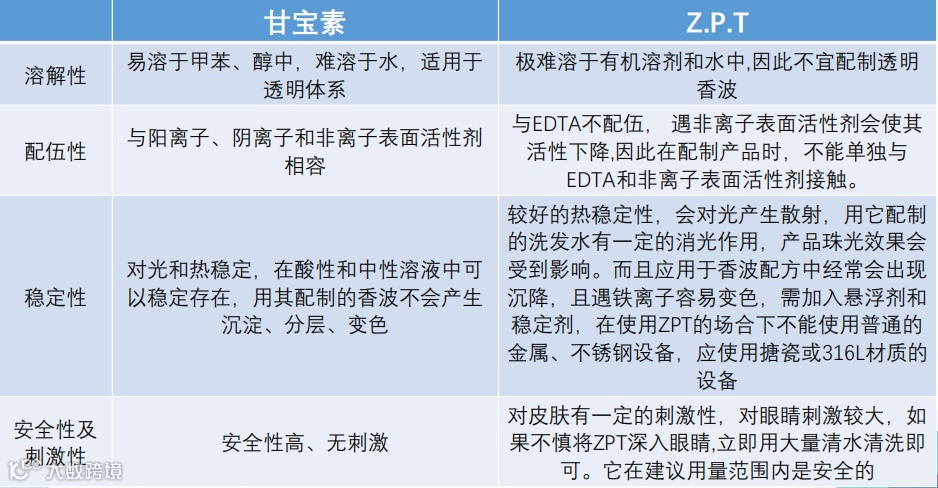 甘宝素具有独特的抗真菌性能,对真菌有较明显的抑杀作用,尤其对引起人体皮屑的真菌有独特的作用,其去屑止痒机理是通过杀菌和抑菌来消除产生头屑的外部因素,以达到去屑止痒的效果,与ZPT合用时对去屑具有明显的协同效应。