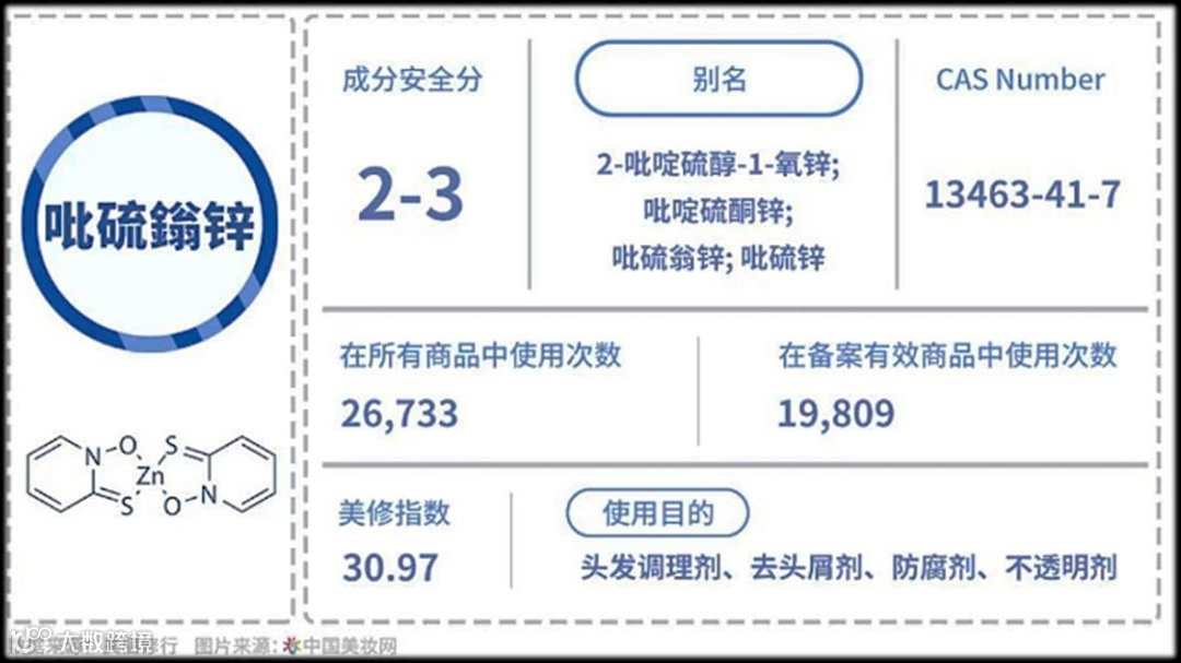 2021年11月3日,基于ZPT被列为1B级CMR物质(归类为致癌、致基因突变、致生殖毒性的物质称为CMR物质,1B级则是对动物作用有证据但对人还缺乏证据、可能对人 体有害的意思)以及对环境生态产生负面影响,欧盟委员会对欧盟化妆品法规相关规定进行更新,明确将ZPT作为禁用物质添加至附录Ⅱ监管,自2022年3月1日起施行。