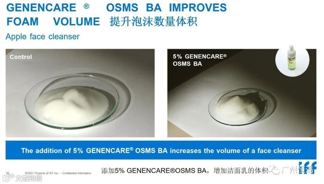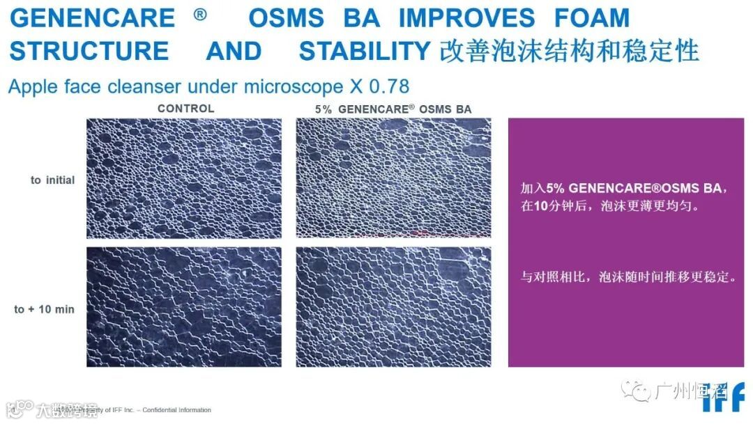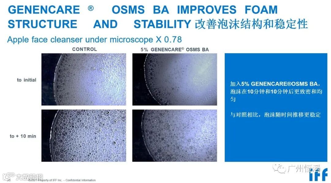 GENENCARE® OSMS BA 能改善泡沫结构,提高泡沫稳定性,明显提升泡沫数量体积。