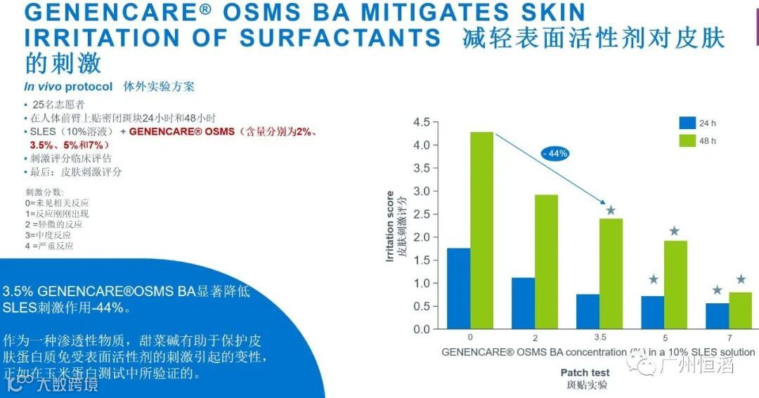 GENENCARE® OSMS BA 能减少SLES的刺激作用。