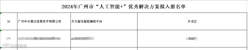 广州市人工智能典型案例和“人工智能+”优秀解决方案拟入册名单公示,谷友企业中长康达入选2024年广州市“人工智能+”优秀解决方案。