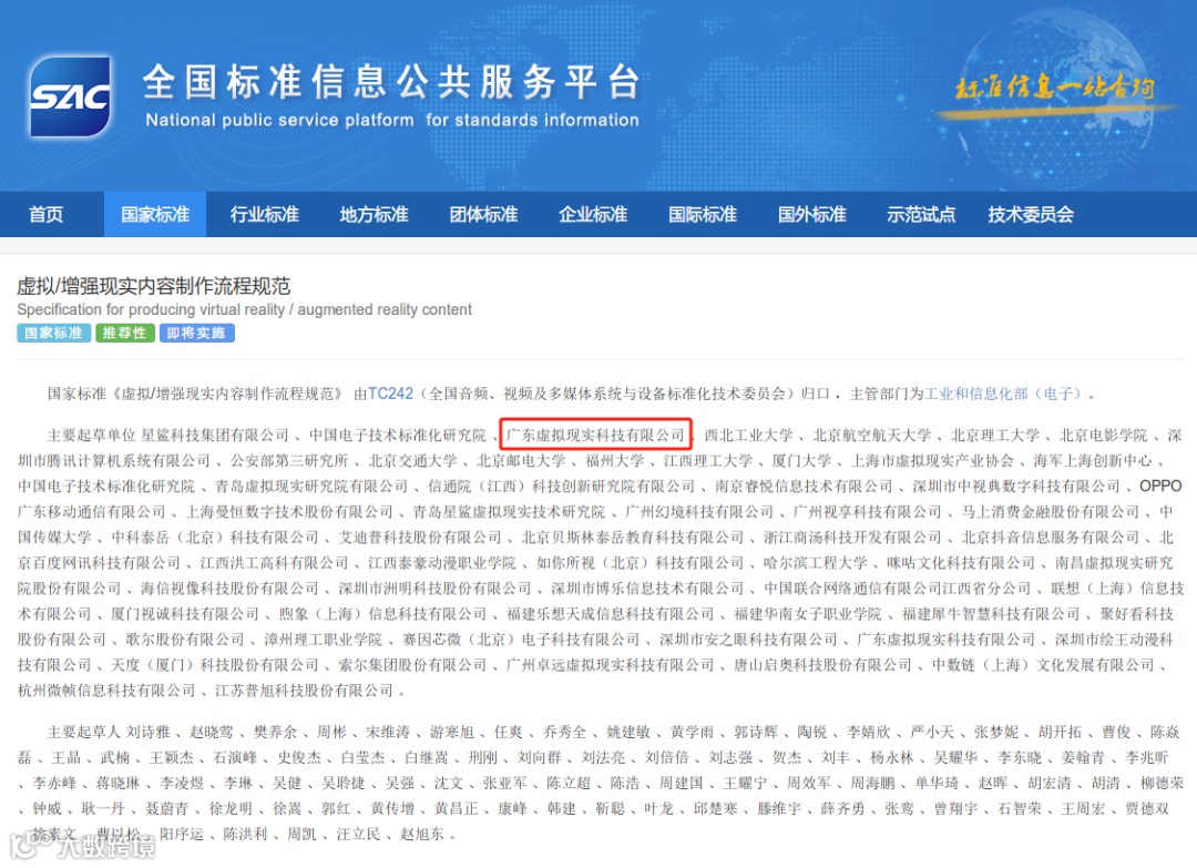 9月,燧光参与制定的国家标准《虚拟/增强现实内容制作流程规范》(GB/T 44465-2024)现已获得批准,将于次年3月1日正式实施。该标准由 TC242(全国音频、视频及多媒体系统与设备标准化技术委员会)归口 ,主管部门为工业和信息化部(电子),相关标准的实施将有助于对内容的制作流程和质量进行规范,维护虚拟/增强现实内容产业保持良好秩序及健康可持续的发展。