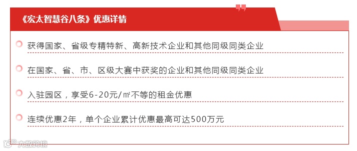 《宏太智慧谷八条》暖企大礼包优惠继续进行中,聚集高科技企业,助力高质量发展,诚邀您入驻