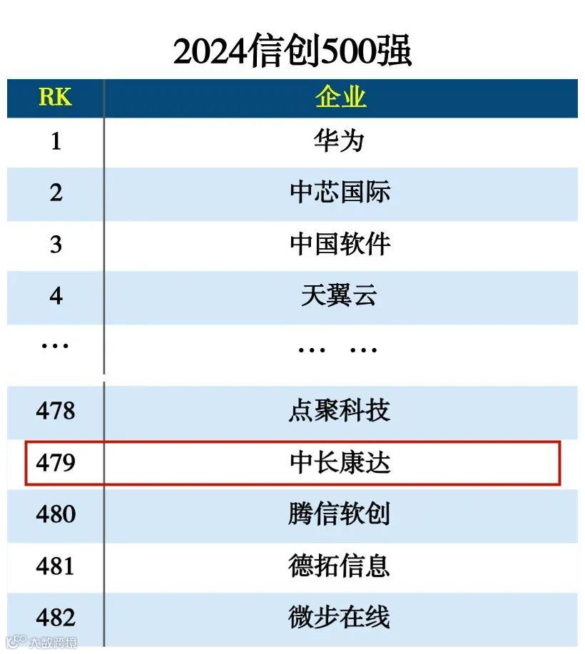 9月,“2024中国信创500强”榜单发布,中长康达凭借卓越的技术研发能力、完善的产品服务及创新的解决方案,再次入选。