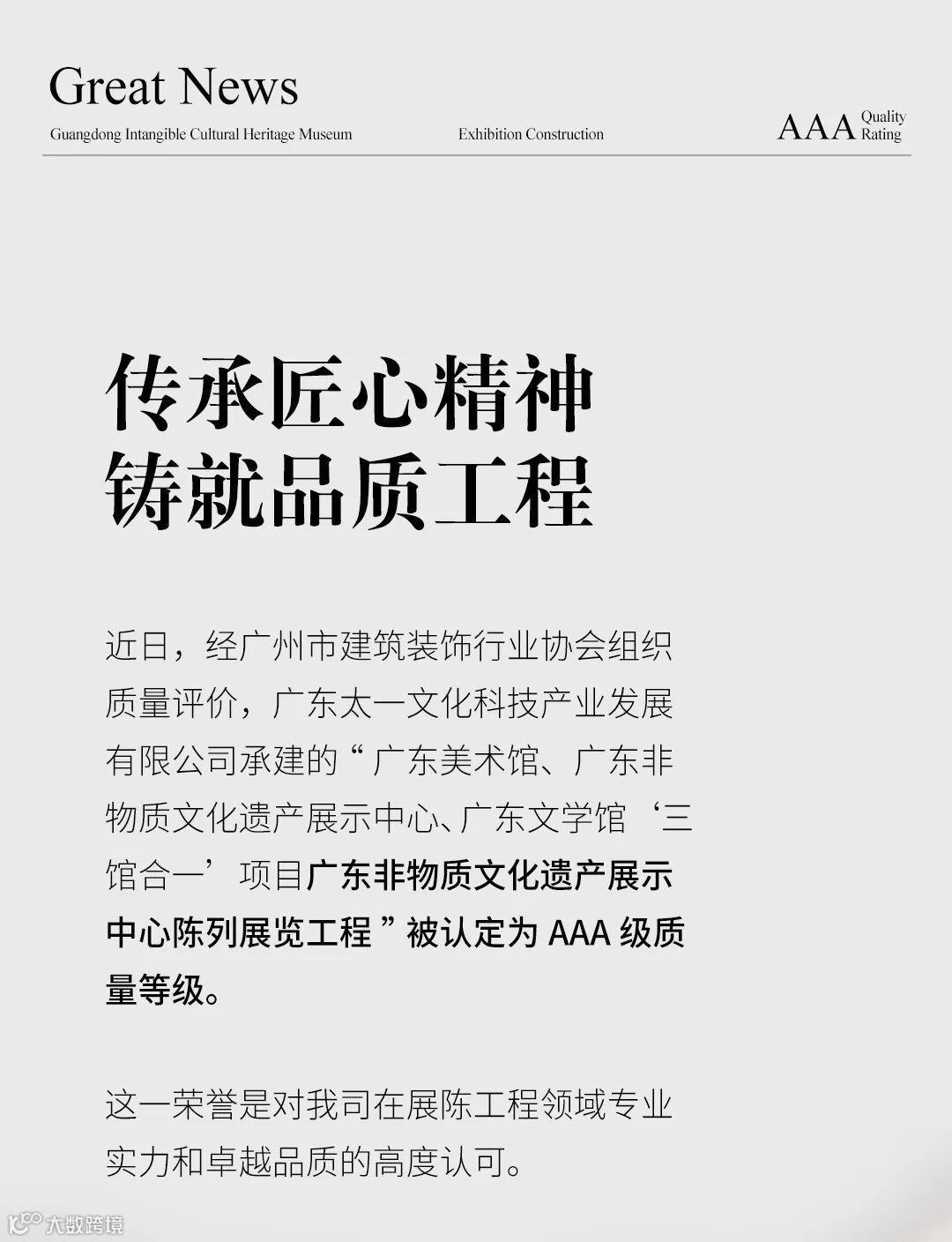 喜讯!广东太一承建广东省非物质文化遗产馆陈列展览工程获AAA级质量评价
