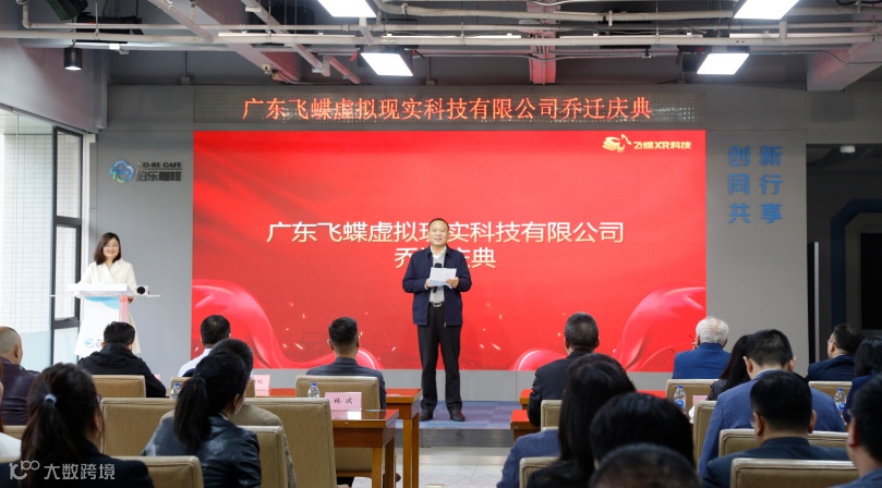 伴随着全场礼炮齐鸣,飞蝶XR科技领导及嘉宾一同为乔迁庆典揭幕,现场一片喜庆欢腾之象,寓意乔迁大喜、财源广进!