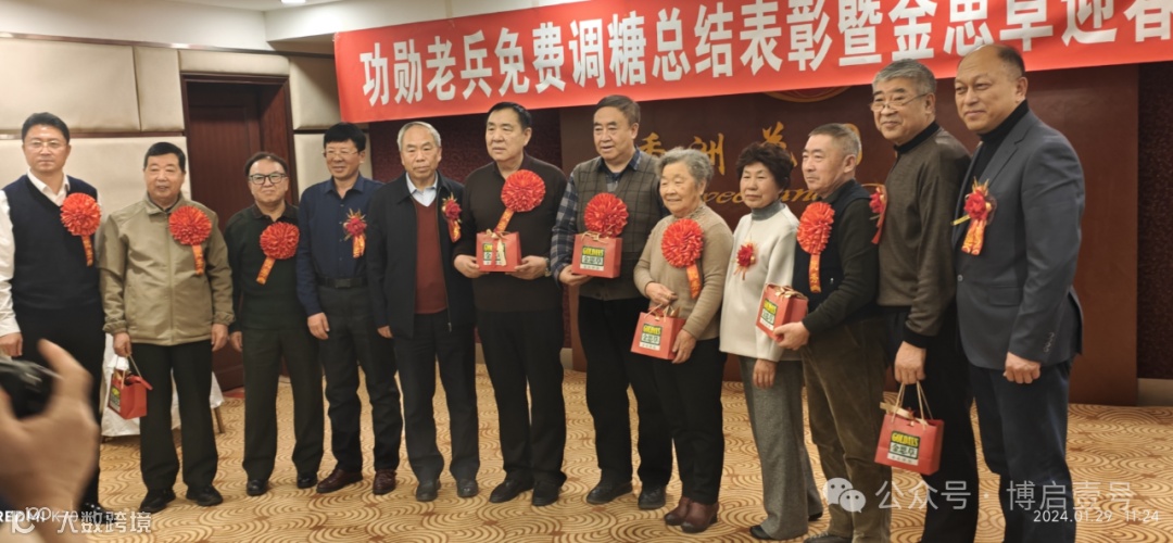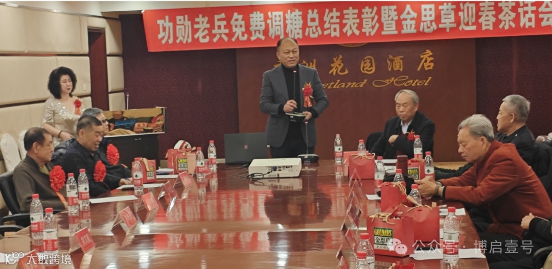 在新春佳节来临之际,为了弘扬拥军崇军的光荣传统,营造关爱老兵的浓厚氛围,2024年1月29日,金思草慈善总会、博启壹号公司在大连香洲花园酒店举办了“功勋老兵免费调糖总结表彰暨金思草迎春茶话会”,会上来自五湖四海的功勋老兵及有关领导们,都做了服用金思草产品后的真实感言,对金思草产品的调糖效果给予了十分的肯定。