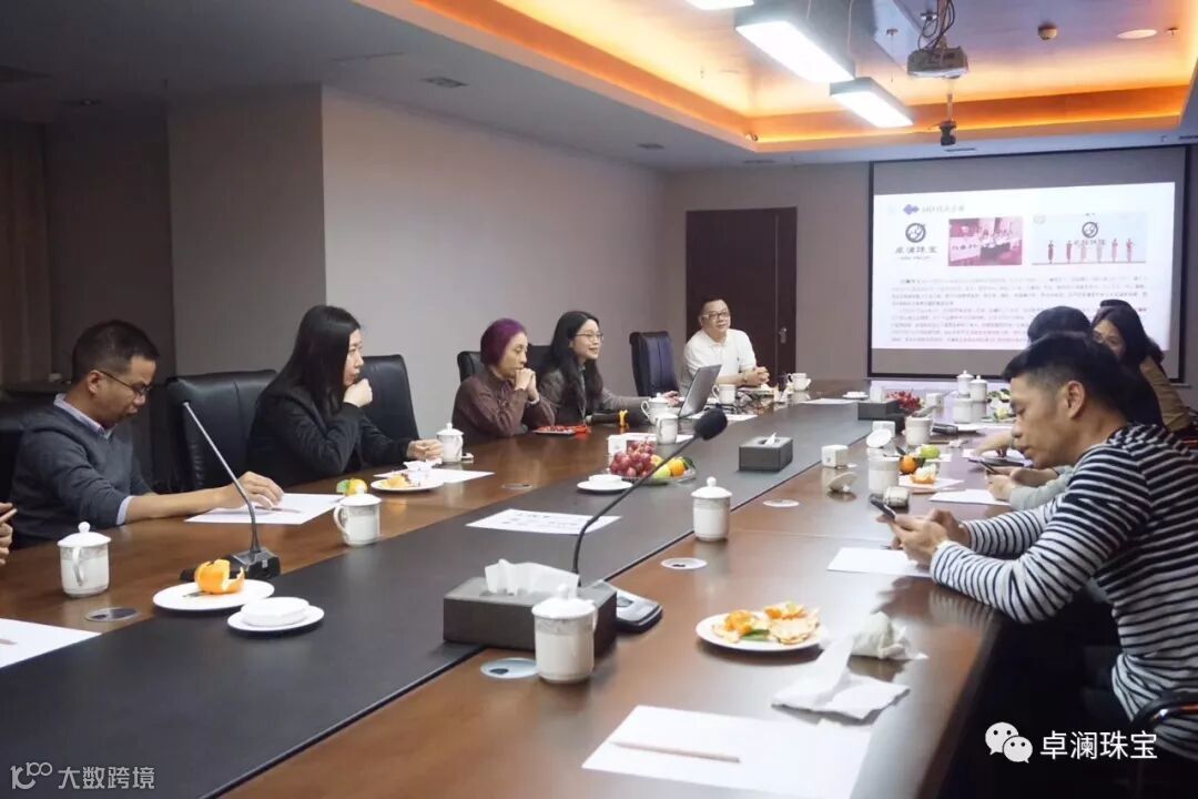 卓澜珠宝董事总经理贾环宁女士为向荔湾区政协调研组介绍卓澜珠宝创新设计的珠宝首饰和卓澜电商业务的发展。