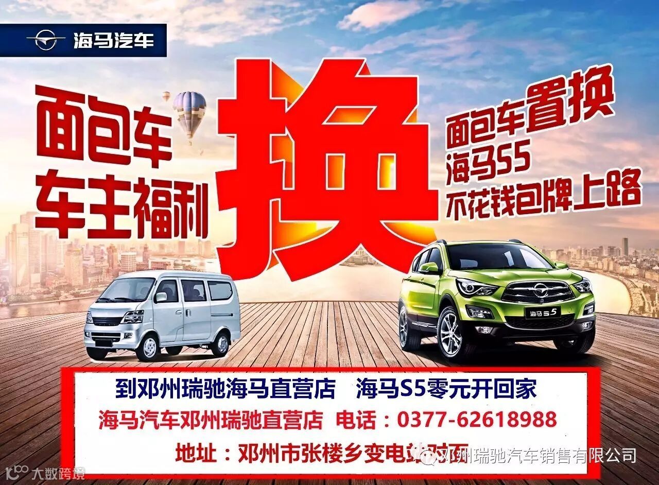 只要家里有(面包车),都可到邓州瑞驰海马4S店置换海马汽车一辆!