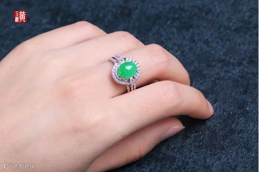 缅甸天然翡翠配钻石戒指
