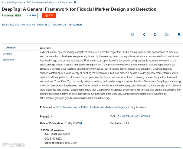 燧光明星研发团队X-Lab (aka. Ximmerse Research Lab) 的题为“DeepTag: A General Framework for Fiducial Marker Design and Detection”的研究成果被国际顶级学术期刊 IEEE Transactions on Pattern Analysis and Machine Intelligence(简称TPAMI)接收为长篇论文。