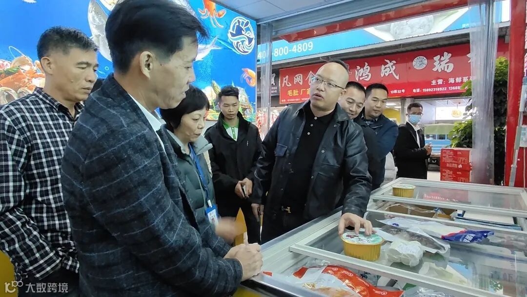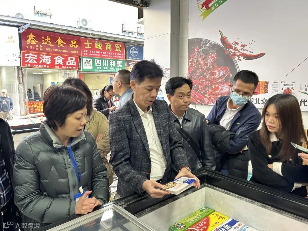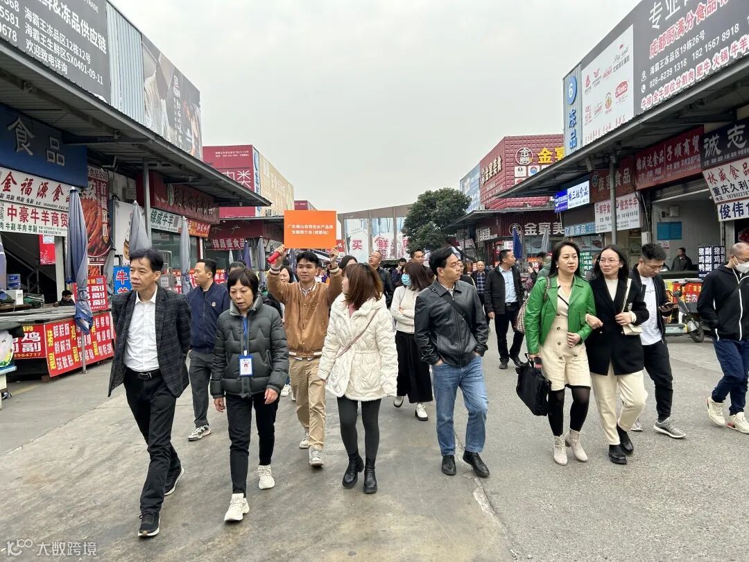 12月12日,佛山市农业农村局副局长李建能携广东佛山名特优水产品牌推介会考察团来到成都海霸王批发市场考察,市场负责人王经理详细介绍了海霸王食品市场的基本情况及发展历程,并先后考察了欣喜徕食品、千湖水产、海洋发水产,对海霸王批发市场的水产及预制菜现状,商户们的实际经营状况等有了较深入的了解。大家一致认为,该市场规模巨大,商户众多,作为西部地区最大的食品批发市场,掌握着农渔牧产品流通的重要渠道,是佛山水产进入成都市场的优先选择。