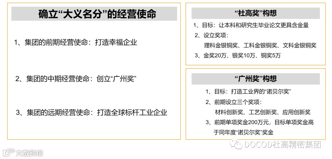 重点介绍了杜高肩负的“大义名分”的经营使命,它分为三个阶段:在