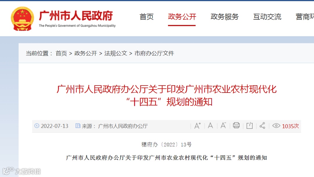 广州市人民政府办公厅关于印发广州市农业农村现代化“十四五”规划的通知原文