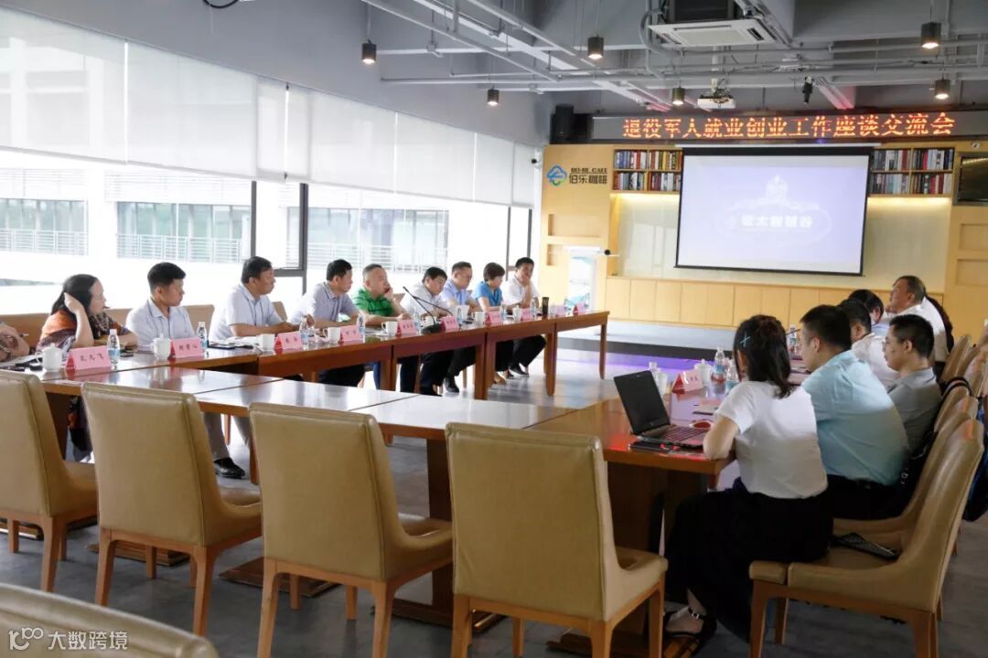 企业走访结束后,山东省退役军人事务厅就业创业工作调研组一行、广东省退役军人事务厅就业创业处、广东省军转促进会、广州市退役军人事务局就业创业处及天河区退役军人事务局领导,在伯乐咖啡路演大厅召开退役军人就业创业工作座谈交流会。