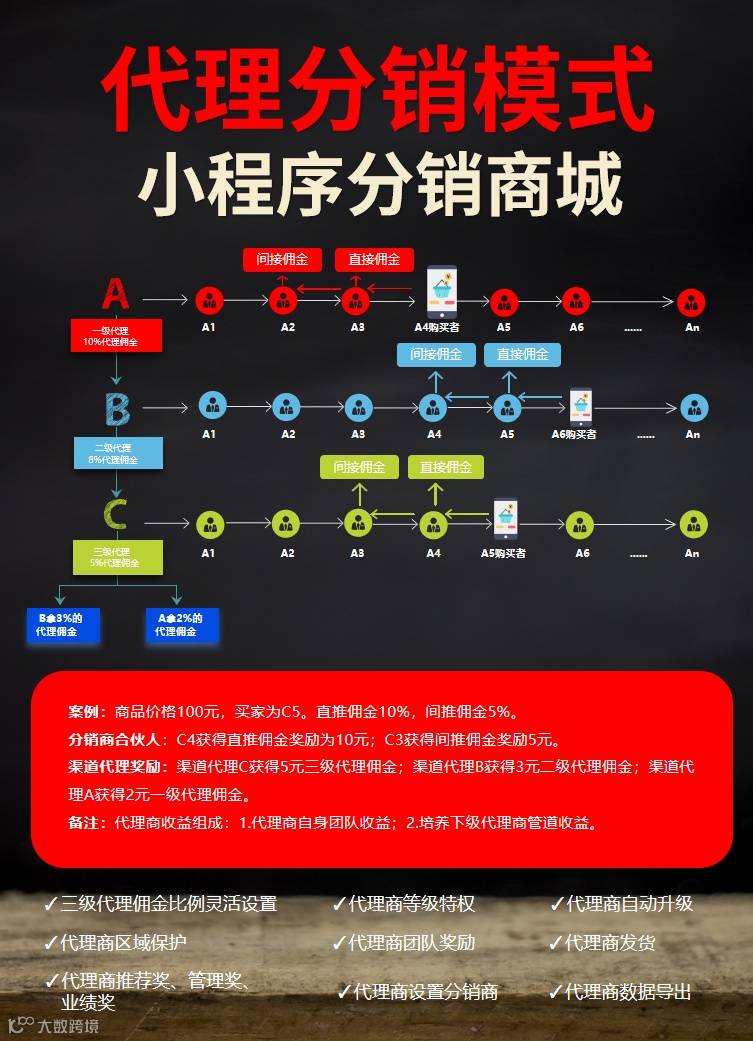 多模式分销架构:支持二级分销、三级代理(省/市/区级)等灵活模式,分销商等级及佣金比例可完全自定义,既能降低入门门槛,又能通过层级激励激发深度裂变。