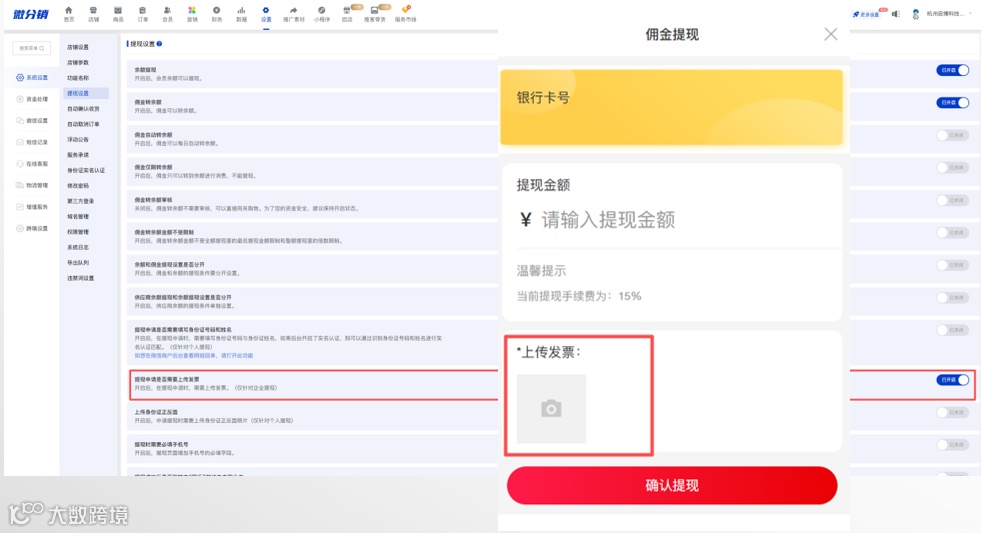 提现设置增加上传发票设置(针对企业提现)