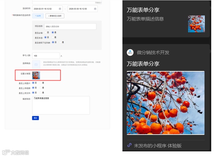 万能表单可设置分享图,设置后分享图片显示上传的图