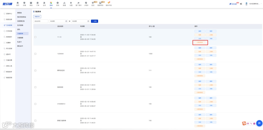 万能表单添加小程序路径