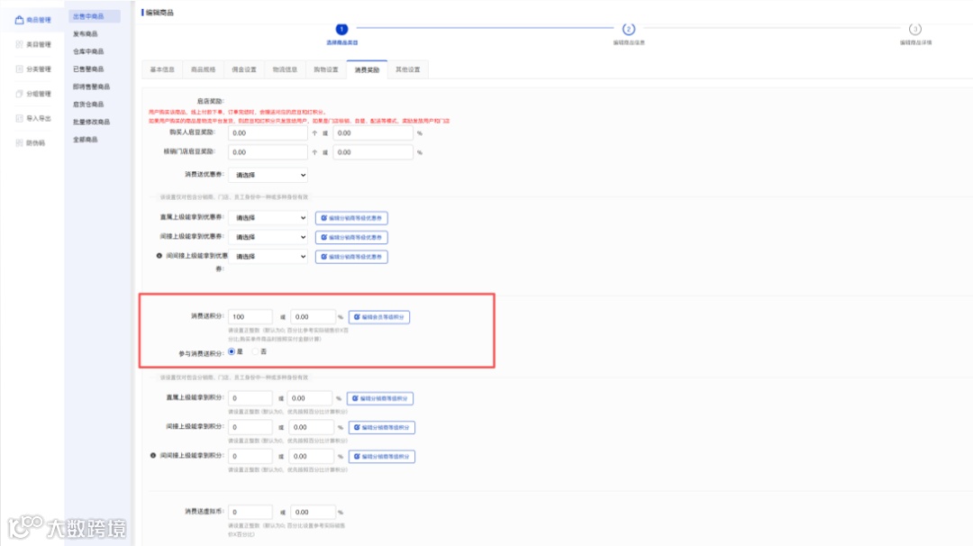 单品可设置该商品是否参与送积分活动