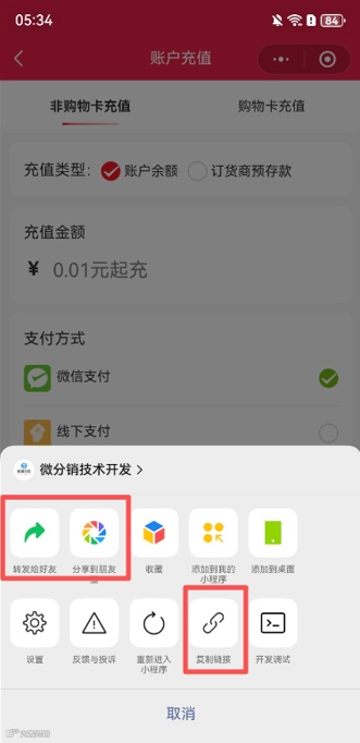 账户充值页面小程序端支持分享