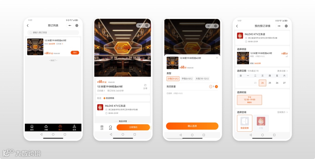 顾客可以通过银乐迪小程序商城,在预期的时间段内选择并预约包间,提高了预订的便捷性和灵活性。