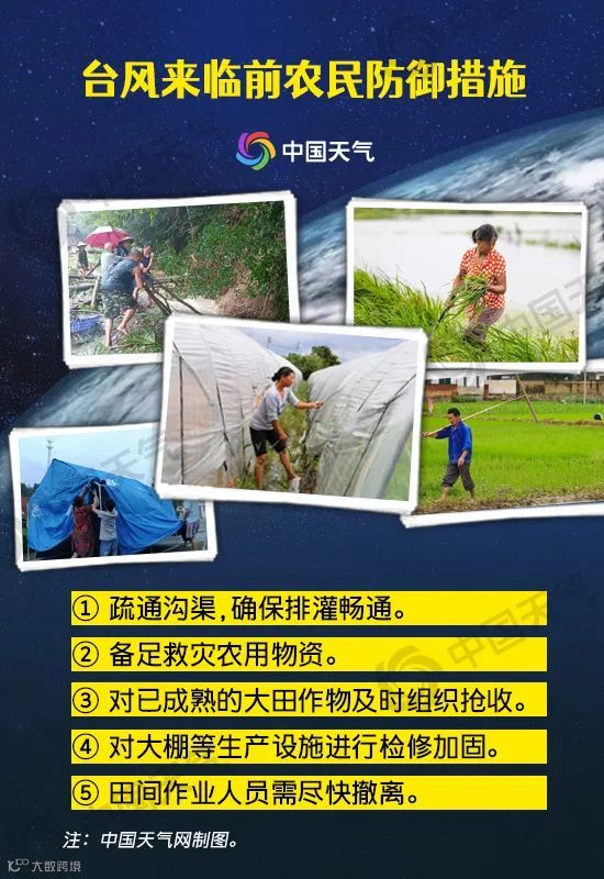 农民朋友在台风消息发布后,对可能遭受台风袭击、发生洪涝灾害的地方早作准备,及时采取防灾避灾措施。对大田作物来说需疏通沟渠,开好田间排水沟,确保排灌畅通;备足救灾农用物资;对稻、玉米、大豆、瓜菜等大田作物已成熟的,及时组织抢收;对大棚等生产设施进行检修加固,同时及时组织田间作业人员撤离。