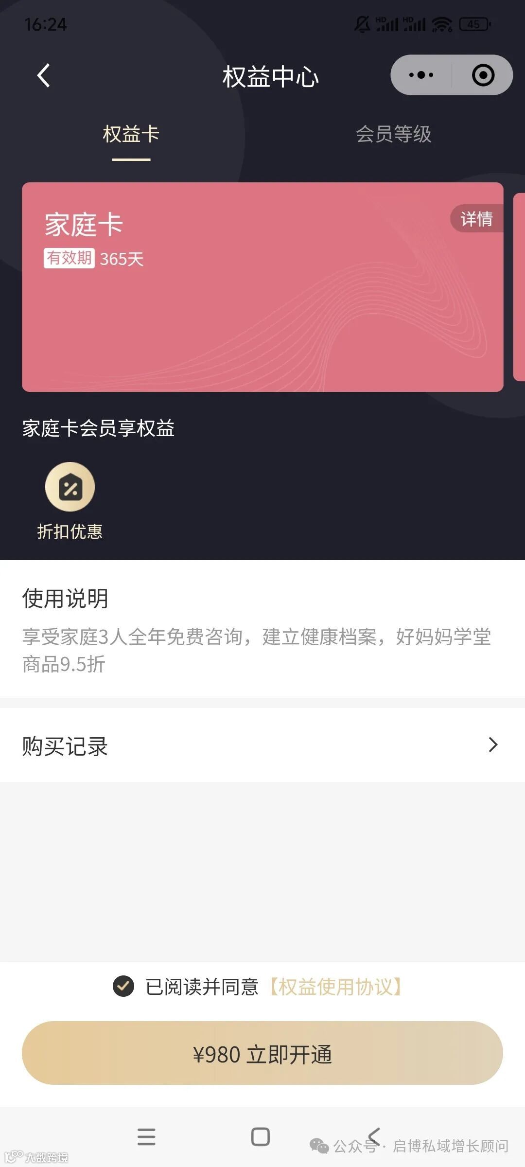 会员板块,针对用户差异化需求,推出家庭权益卡与个人会员卡双轨产品。个人会员卡提供年度免费咨询,建立健康档案,好妈妈学堂商品9.5折。而家庭权益卡则聚焦家庭服务,可为3位家庭成员提供全年免费咨询,建立健康档案,好妈妈学堂商品9.5折,充分满足多孩家庭复合型健康管理需求。