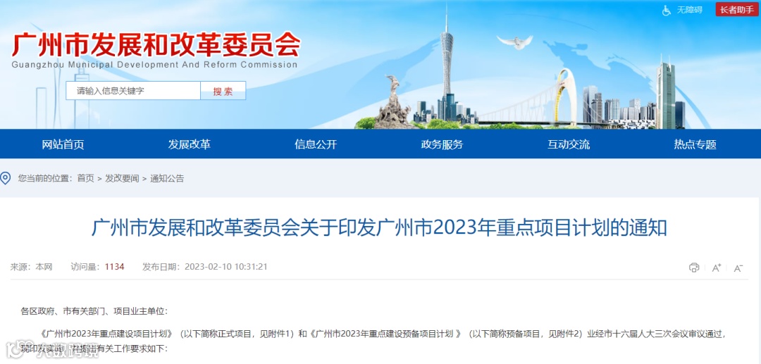《广州市2023年重点建设项目计划》