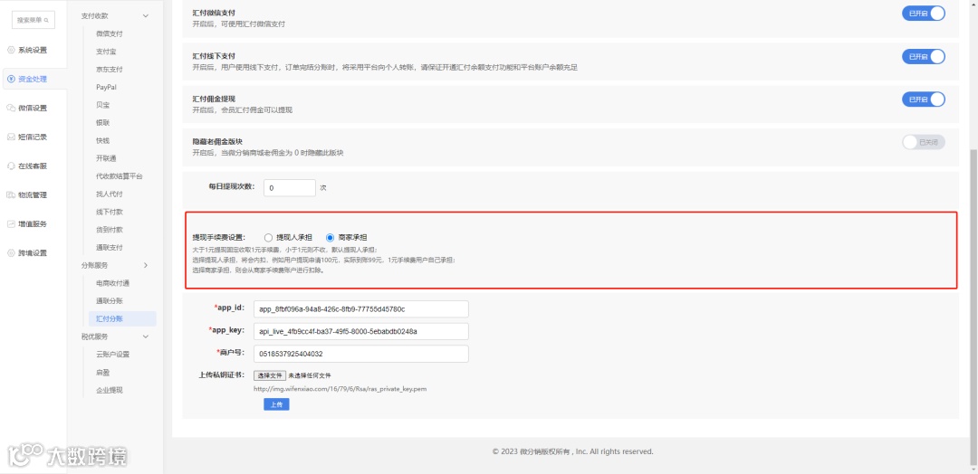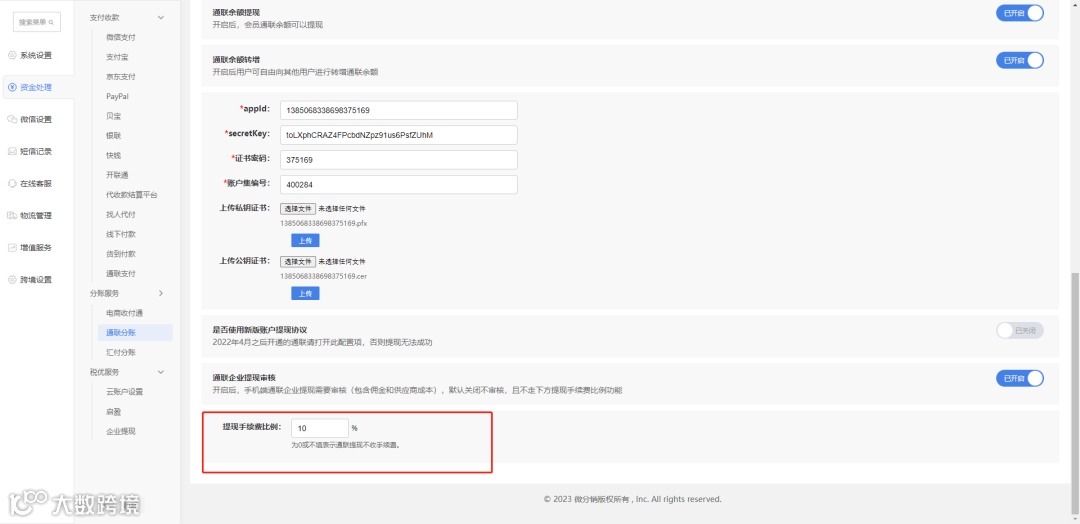 通联分账新增提现手续费