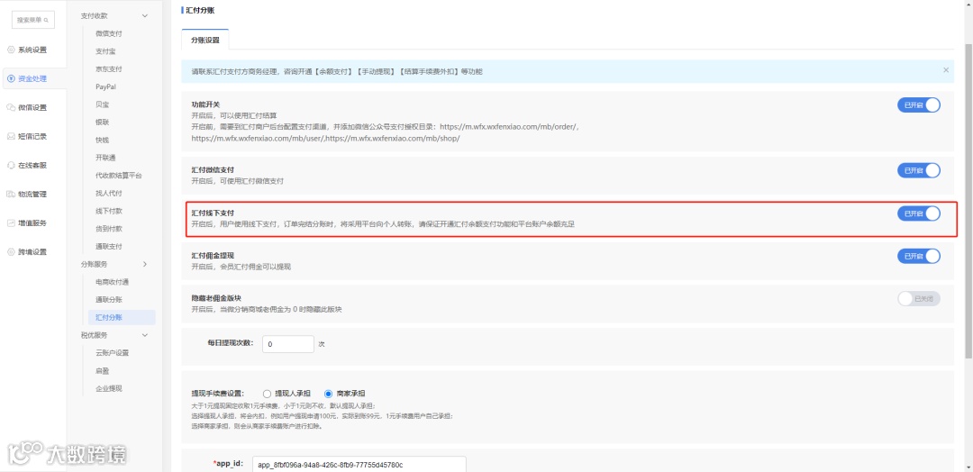 汇付分账(需单独付费)