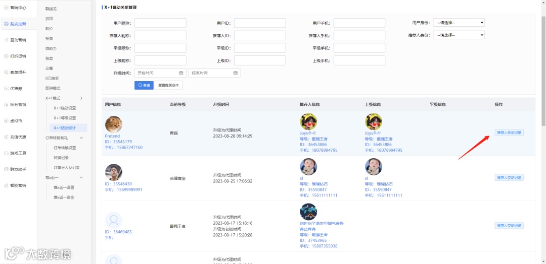 链动统计新增推荐人变动记录