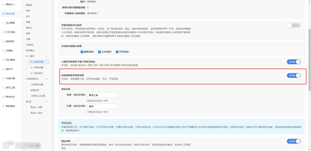 老板复购X+1商品是否返佣增加配置项