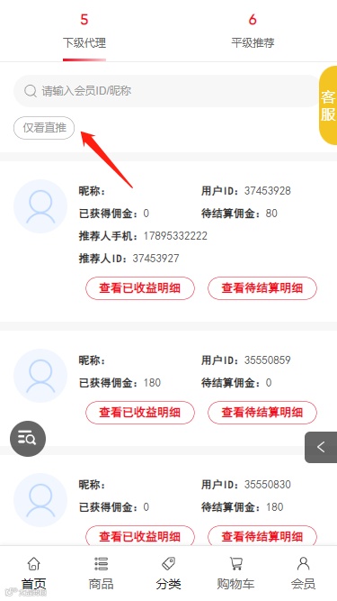 链动成员中的下级代理看板增加“仅限直推”的快捷筛选