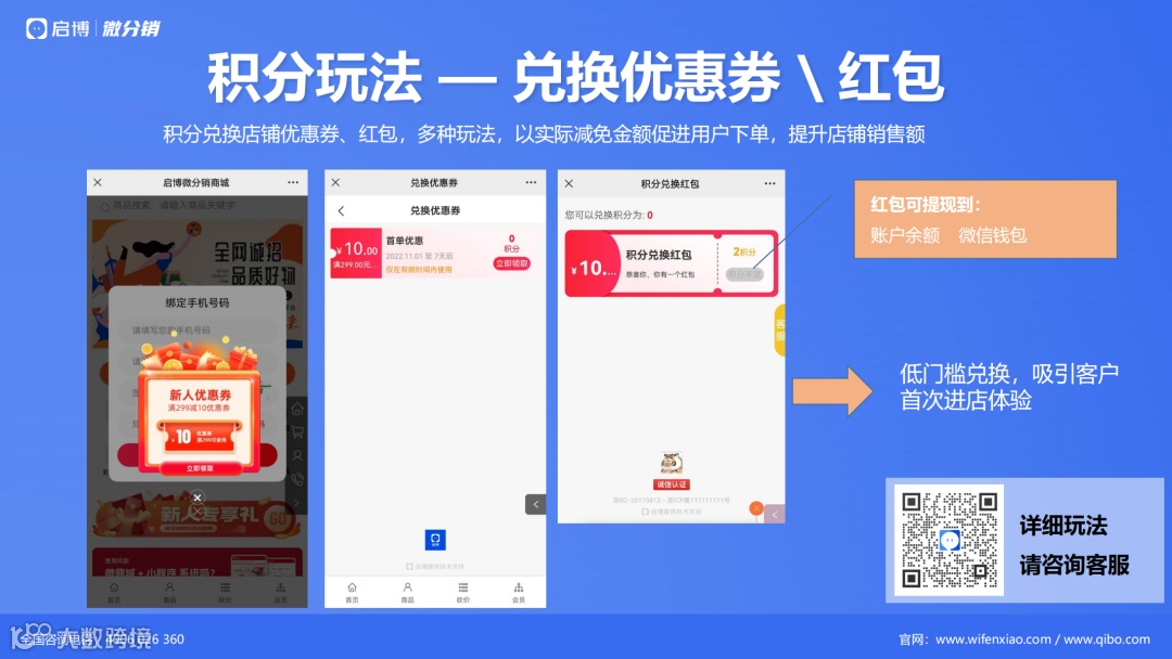 用户所有的积分行为,本质目的是为了换取品牌更高的权益和回报。启博微分销积分商城打通会员积分,用户可以凭借积分在商城中兑换相应的奖励。