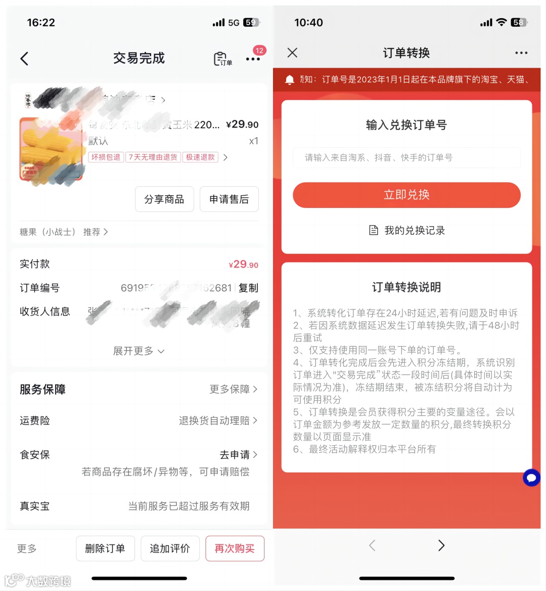 订单转积分功能打通全域主流平台,商家可以以“订单兑换积分、更多活动福利”为利益点,将消费用户吸引到私域兑换积分,从而利用小程序获取顾客的联系方式。