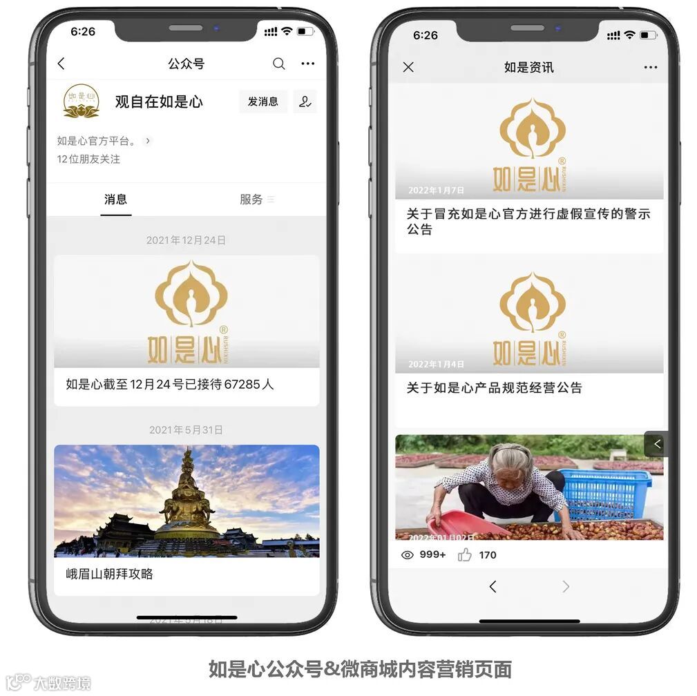 “如是心”通常指的是佛教修行中一种超然的境界,代表着三千大千世界的心量。如是心在品牌营销上和佛教修行结合比较密切,在九华山、五台山、峨眉山、普陀山等地都设有如是心接待酒店,免费接待到访朝拜的信徒,在线上线下累积了比较多的粉丝,粉丝的忠诚度非常高,在分销转介绍模式上有明显的优势(主要是微商体系玩法),因此在2020年10月份经由启博公司老客户介绍,合作了微分销系统,采用分销+代理+订货模式,上线7个月,累积粉丝超百万,营业额超5000万+。