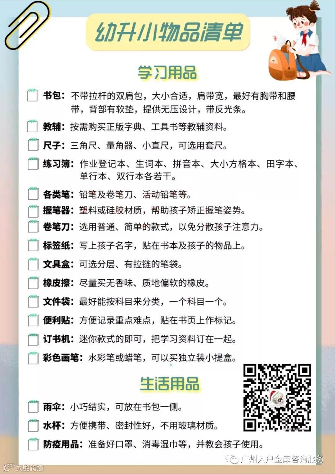 一份幼升小物品清单,