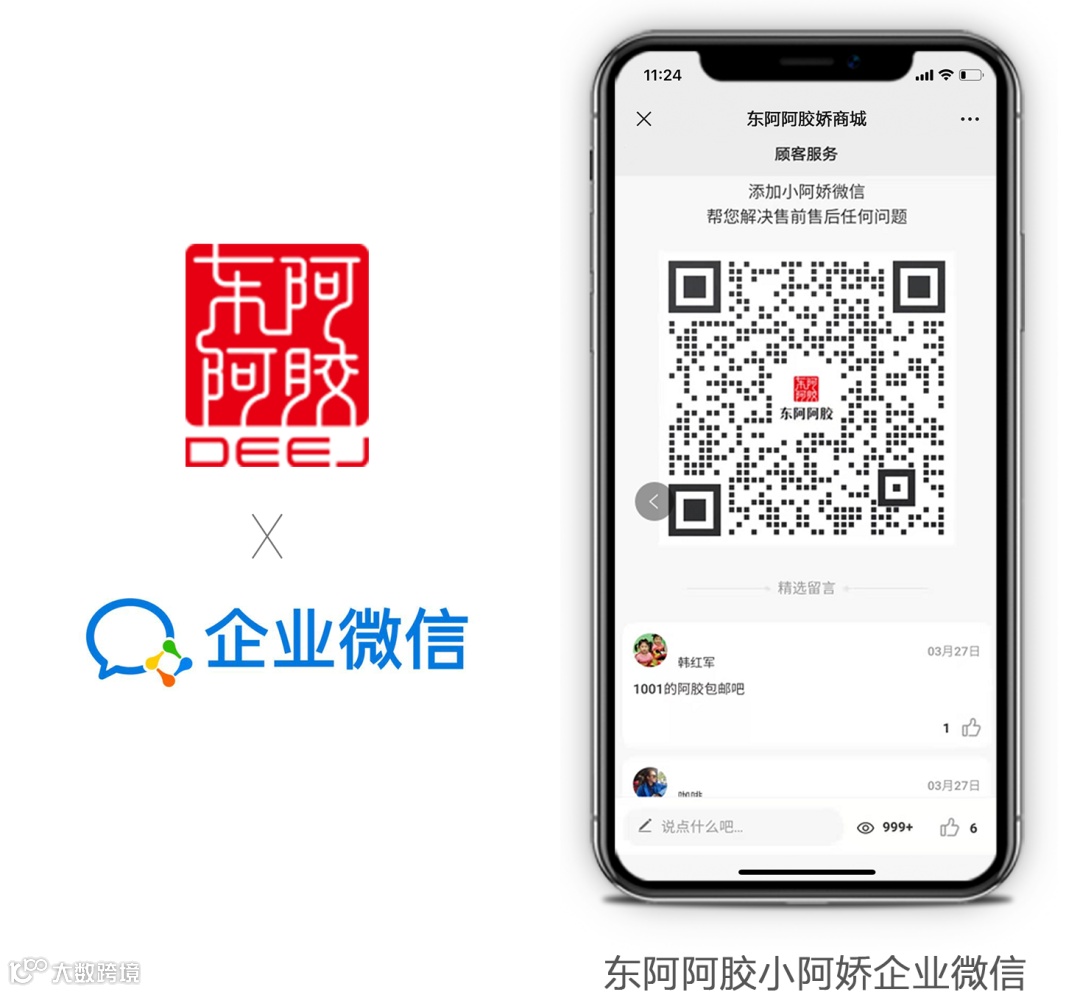 当消费者在微信商城下单后,系统便会自动弹出企业微信二维码,用户识别添加好友后,东阿即可通过企业微信与消费者建立沟通,同时也能看到其订单及浏览的商品,这大大提高了消费者与商家之间的沟通效率。