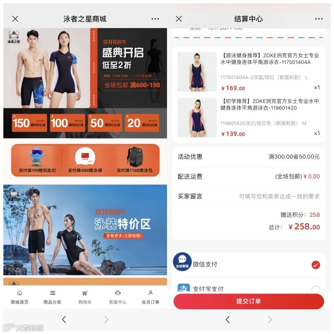 本次双11大促泳者之星除了上线“幸运大转盘”游戏活动营销外,还推出了实付“满减+满赠”活动,针对多个消费层级的消费者设置多种优惠方案,吸引顾客组合消费,有效助力商家盘活库存,提升客单价!
