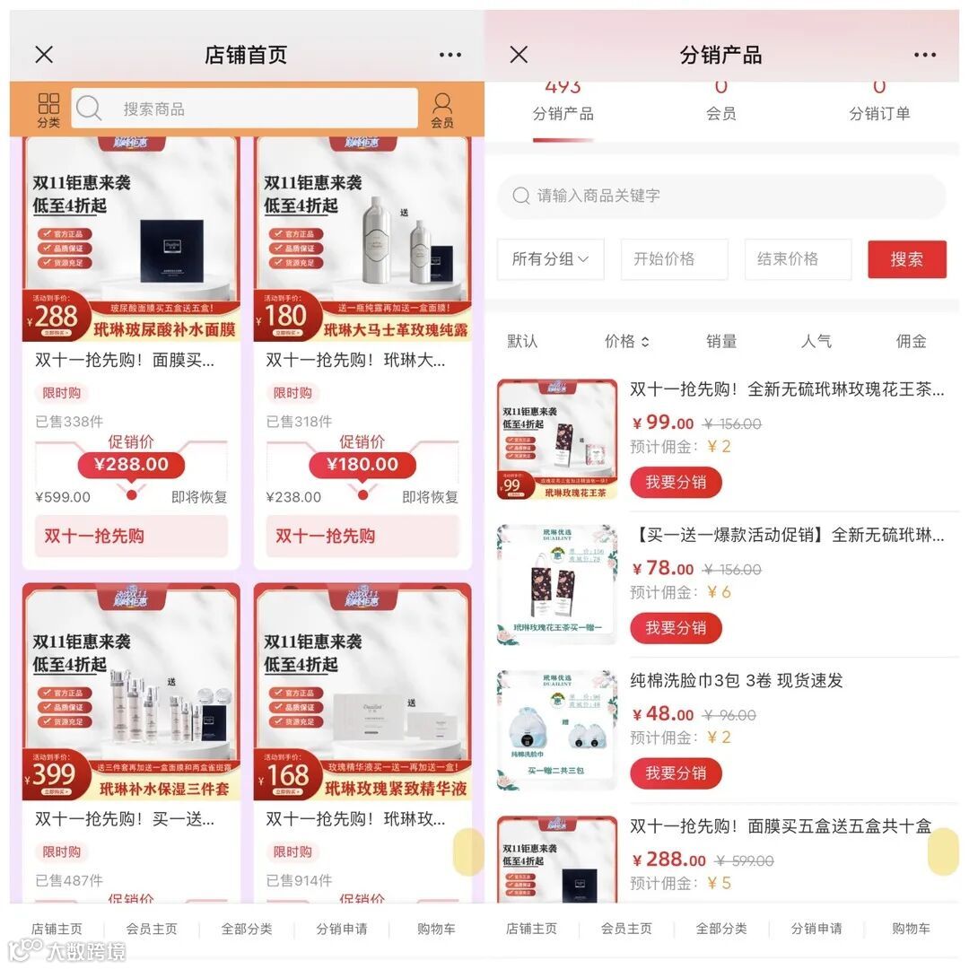 玳琳微商城上线双11低至4折“限时抢购”营销活动,全场商品大促销,在给到消费者优惠权益的同时,分销商们借此活动力度和紧迫购物氛围转发商品分销,提高商城业绩。