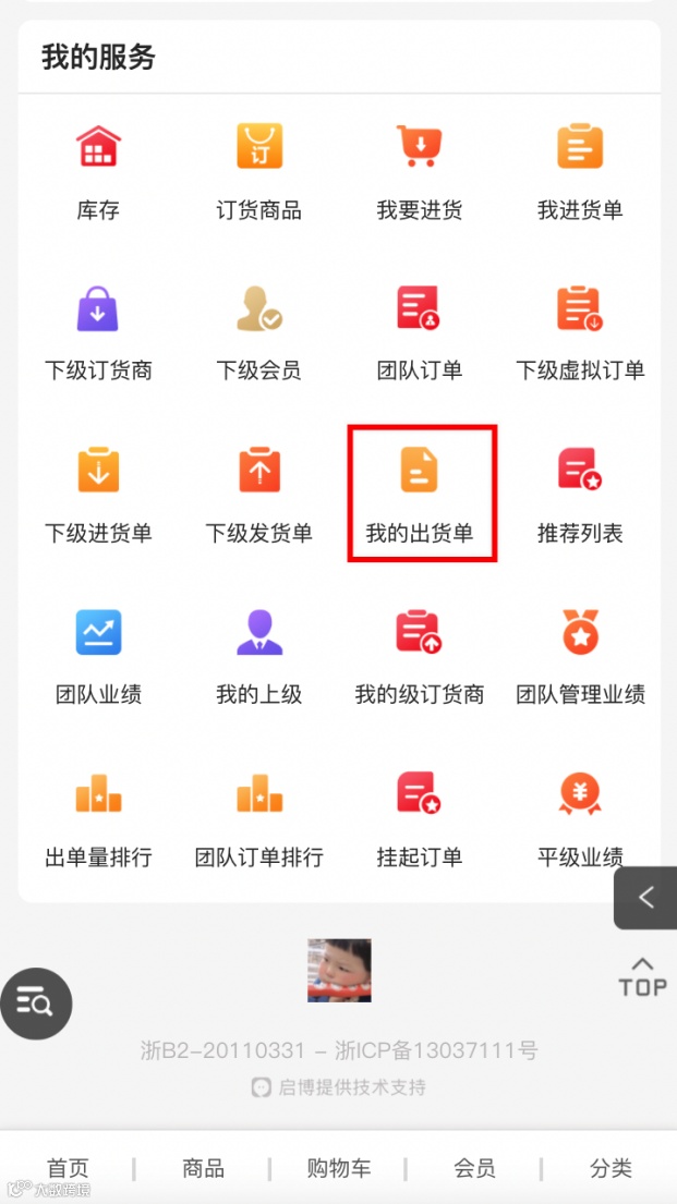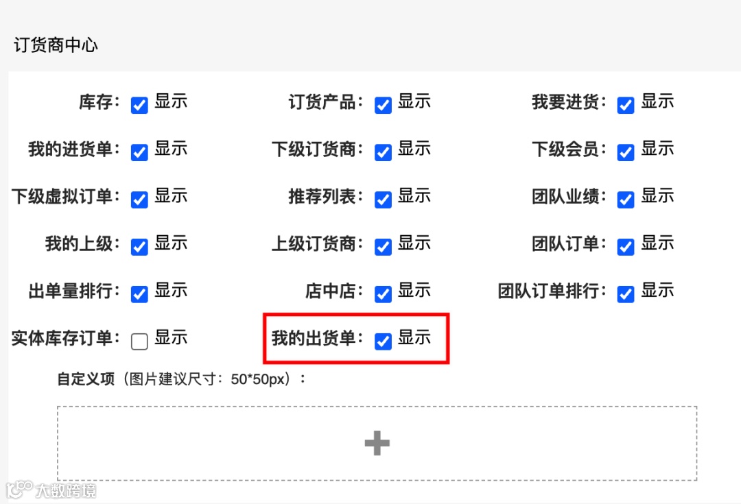 在会员主页勾选"我的出货单"后,订货商中心增加"我的出货单";