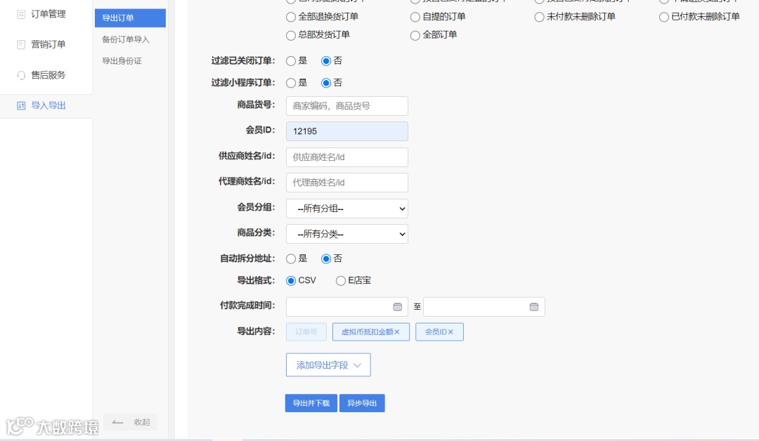 (1)导出内容选择“虚拟币抵扣金额”,点击导出并下载;