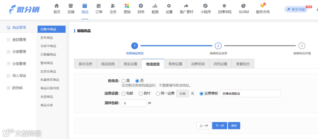 (2)供应商商品点击编辑,运费模板可以选择总部和供应商的运费模板。