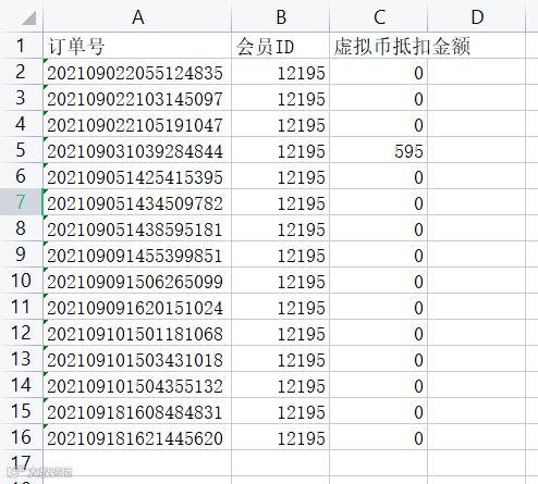 (2)查看导出文件包含“虚拟币抵扣金额”字段及内容;